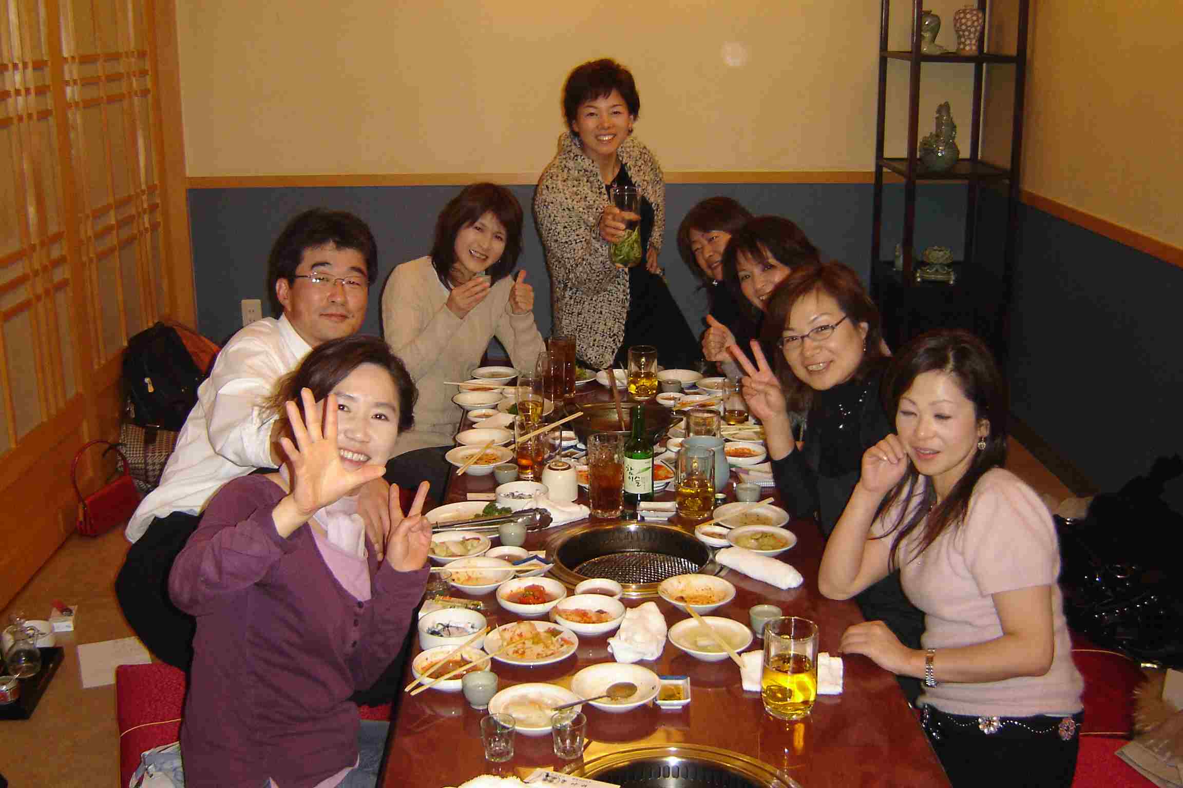At the farewell party for Roh sensei. He's teaching Korean to Linka.(3-23-06) |