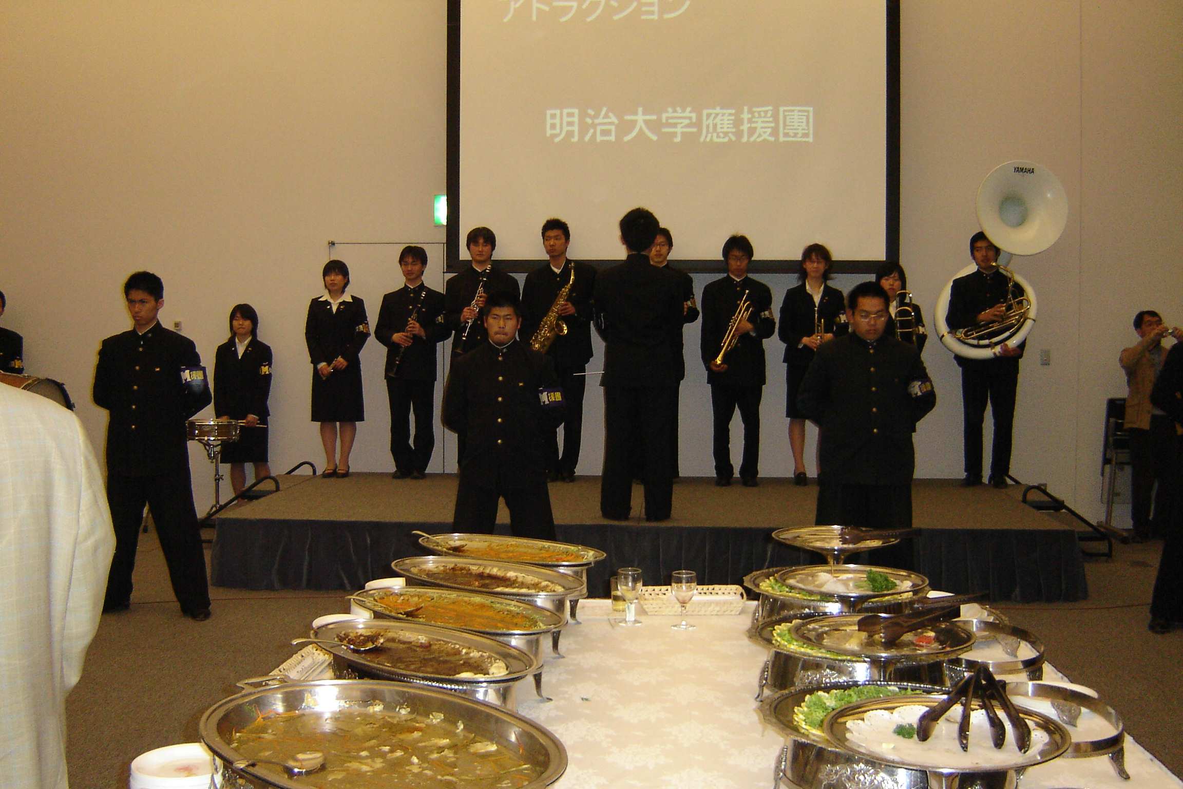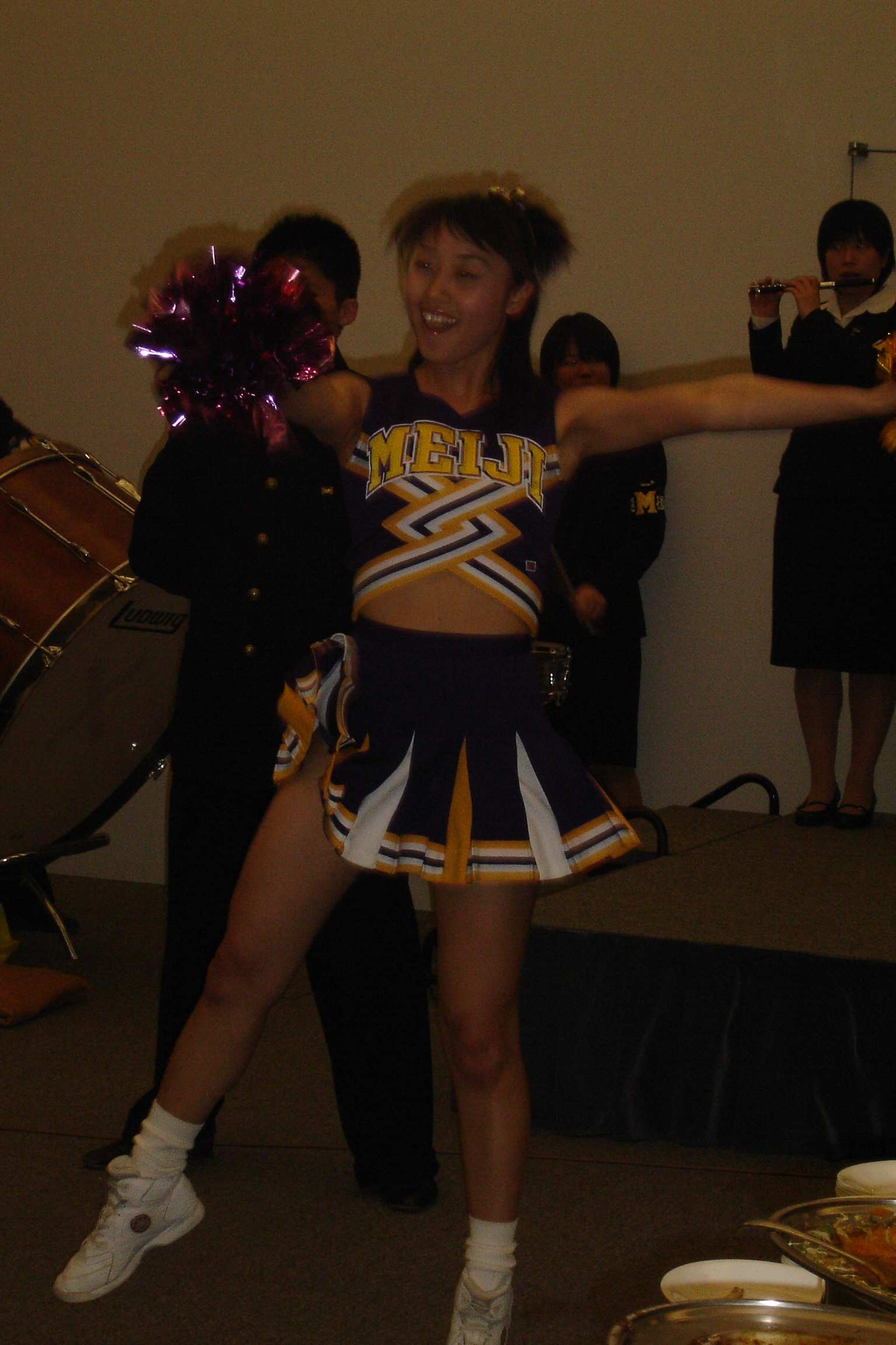 After the banquet, a performance is provided by the cheerleaders of Meiji University. Very Powerful. A short video is available on request. |