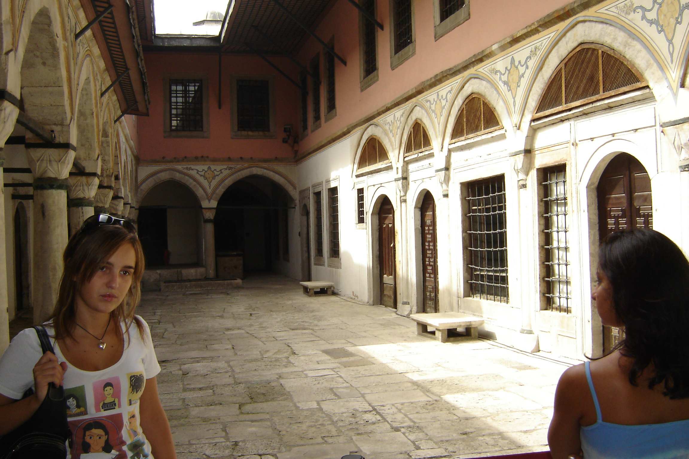 The Topkapi Palace, guarded by heavily armed policemen. |